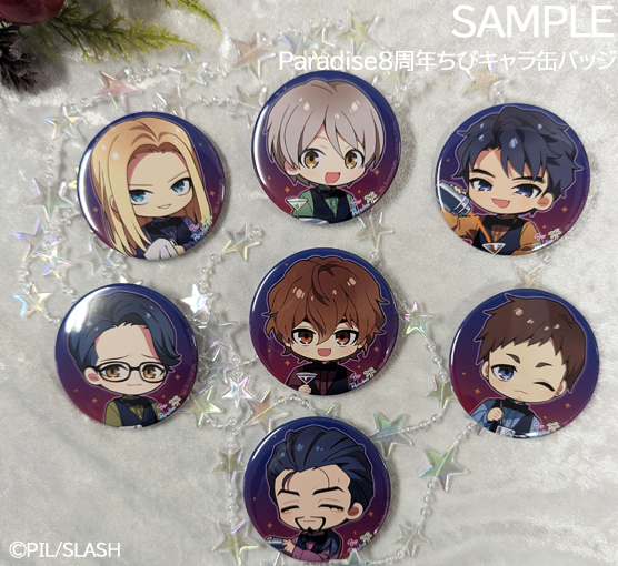 「Paradise 8周年記念ちびキャラ缶バッジ(64mm2個入り)」